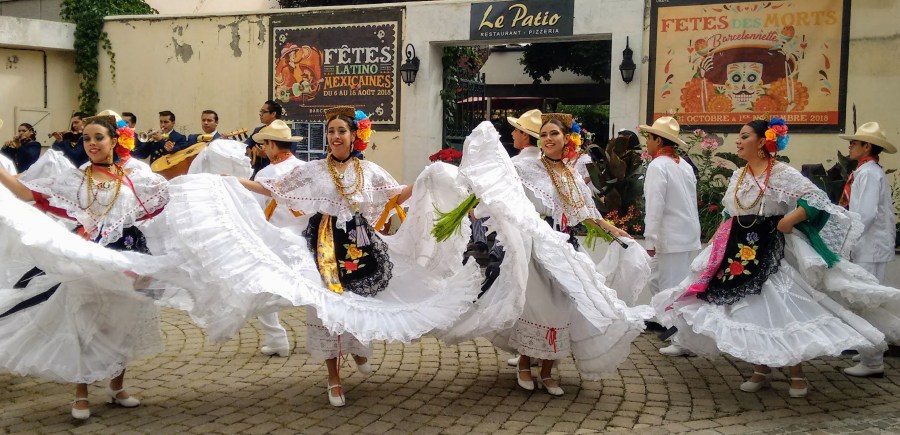 Folkoric dancers kick up their heels.