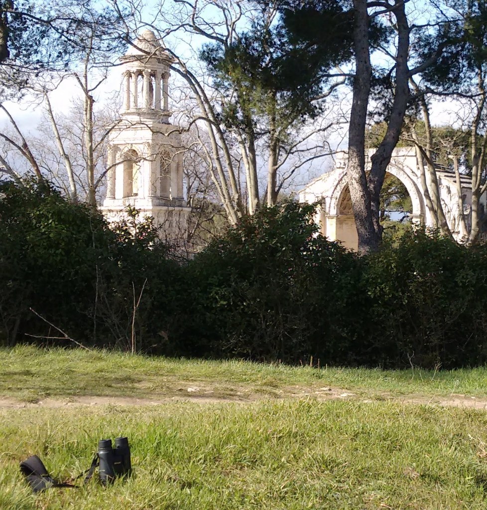 With all the little buds popping open, one sunny day I felt compelled to take a spin around St. Rémy with a close eye on nature’s progress, as well as the town’s. My jumelles–the term for binoculars in French—came along, too, in case a friendly robin or jay should pop by to deliver a chirpy hello. Come walk with me. And, by the way, the binoculars are tucked into six photos. Can you spot them?