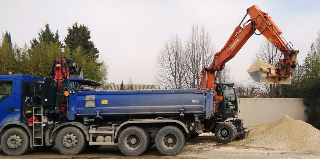 An earth mover prepares the site for a car park and residences near centre ville.