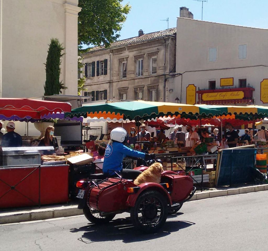During the transhumance of 2019, after the animals trotted down from an elevated plain on the north side of town called the Petit Crau, they ran their course around the village, and then marched back up to their grazing area. (Later, they would be transported to cooler pastures for the summer.) There, a couple of hundred locals gathered for a BBQ—lamb of course! My job was to sit next to Nathalie at a picnic table and join in the toast with our plastic cups of rosé and then pretend to eat while the lovely host sang the praises of St. Rémy. I didn’t have any real lines that day, but I did the next.