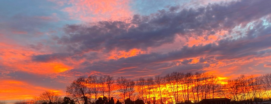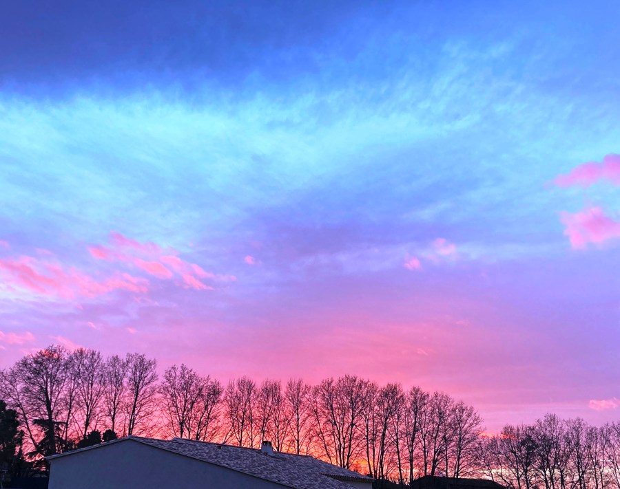 But before we settle in to warm our toes by the fire, we take a peek at what’s happening outside. Sometimes we are wowed by a fabulous sunset, splashing magenta and blue or mauve and hot orange across the winter sky.