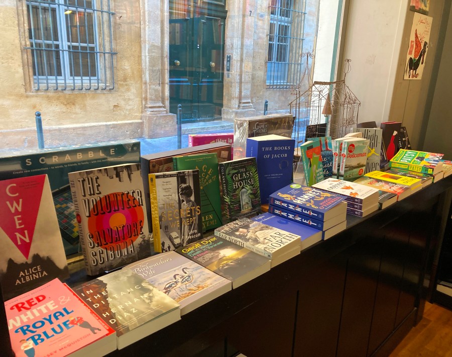 The Birdwatercher’s Wife is out in the world! Here below, displayed at Book in Bar, the terrific international book store/cafe in Aix.