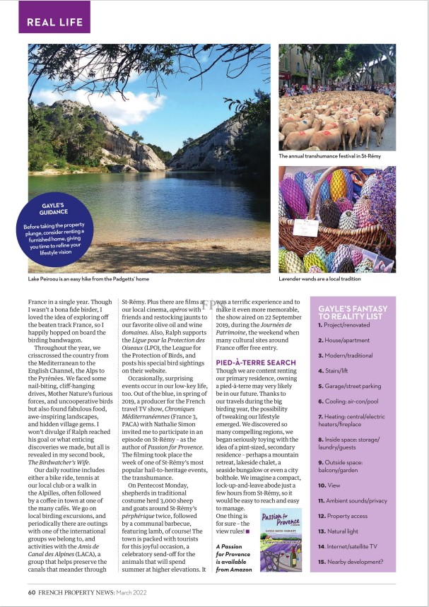 Passion for Provence and The Birdwatcher’s Wife were featured in the March edition of the UK magazine, French Property News. You can read it here!