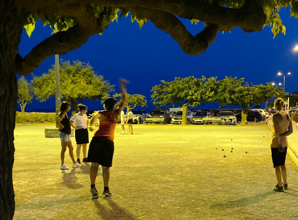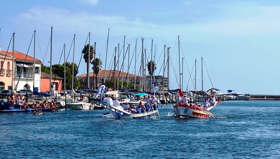 Though the normally calm, authentic village was more active than in off-season, there was plenty of room to roam. For the next couple of days we rode our foldable bikes all around town, witnessed a nautical jousting event at the leisure port, strolled the vibrant Sunday market, and birded at a marshy area outside of town where we spotted Grey Herons, Stilts, and Little Egrets—to name a few feathered friends. And we enjoyed multiple meals with views of the water.