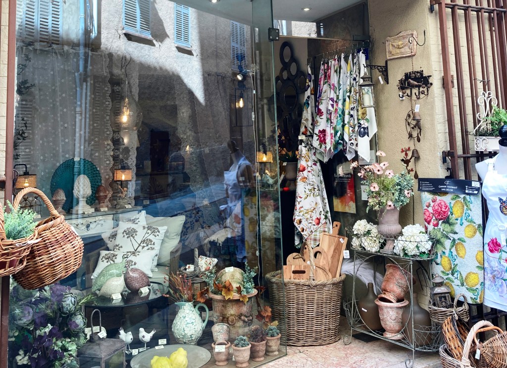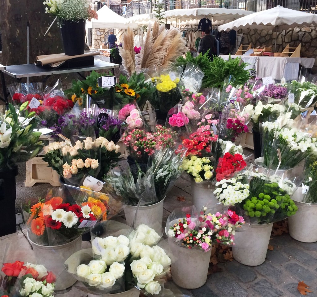 Faded ochre-toned structures with fancifully colorful doors and shutters cram the maze of narrow, winding passageways that open on to spacious squares with graceful fountains. Stopping constantly for snaps was de rigueur, especially from on high where the panoramic view over the valley was captivating. And let’s not forget the vibrant Tuesday marché where locals greeted each other with cheek kisses (yes, contact is making a comeback), often pausing for a chat over a mid-morning espresso. Clearly, shopping was secondary in this convivial ambiance.