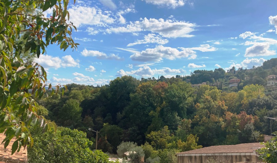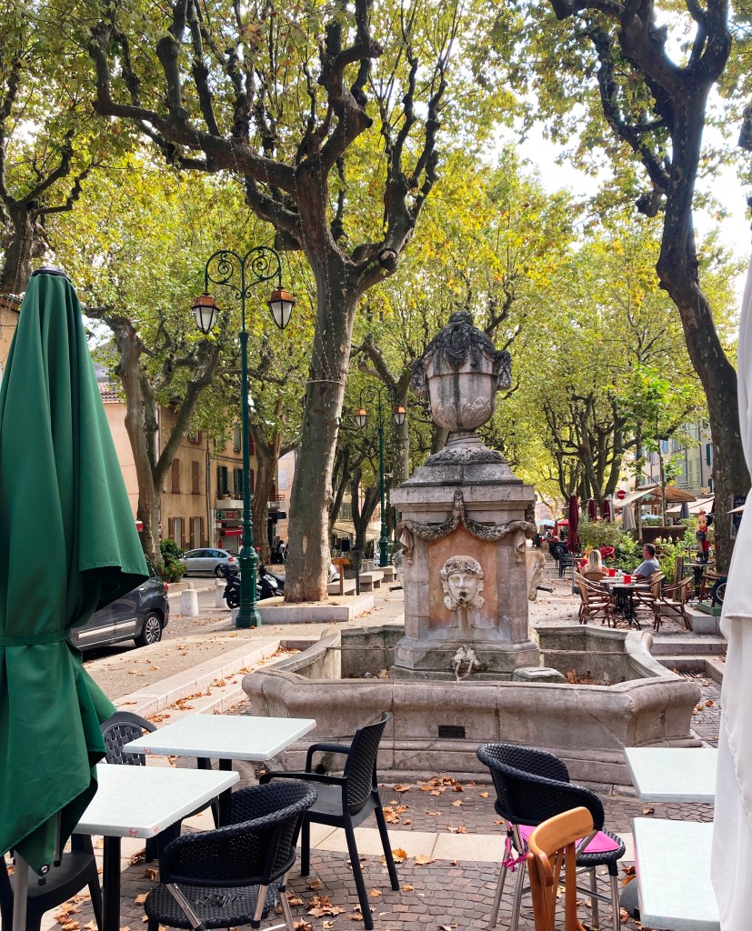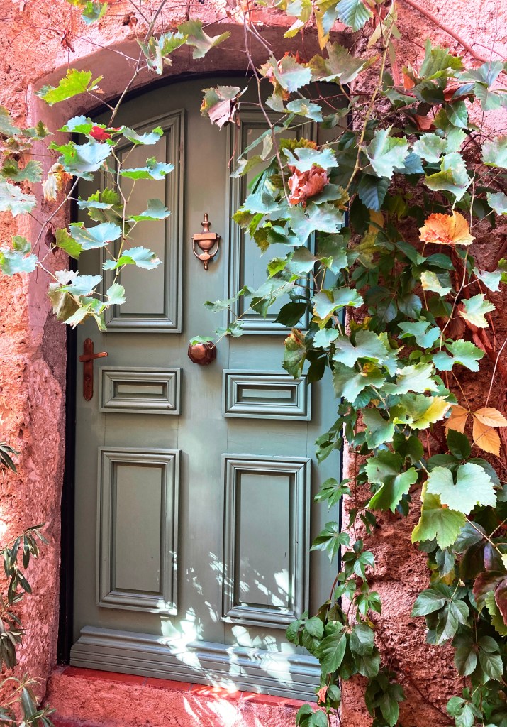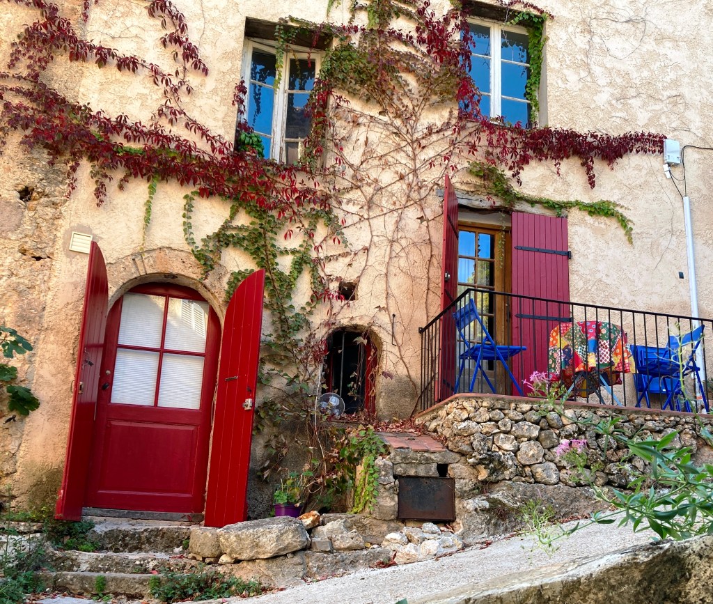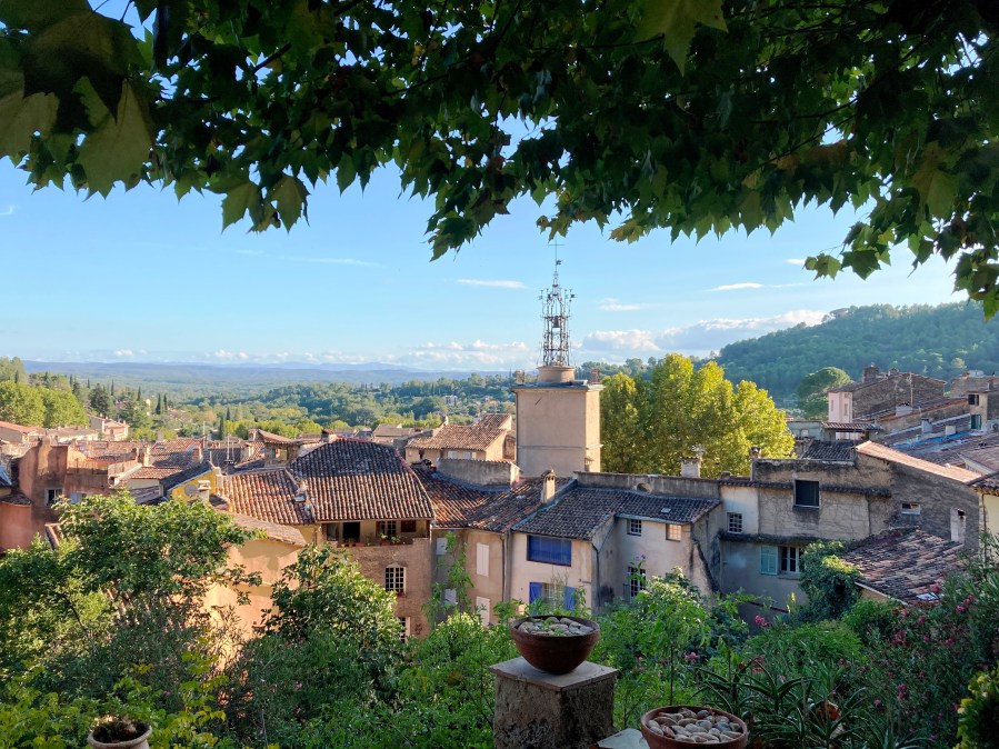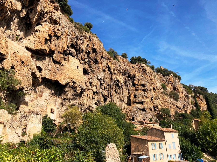 The fact is we were hankering for a uncomplicated autumn mini-break but with gasoline shortages plaguing France, exploring our own backyard made perfect sense. Plus, for eons we’ve been curious about this tucked-away village—under two hours from Saint-Rémy. Years ago before we moved to Provence, it was a Cotignac property I’d seen online that had captured my imagination. The proprieté was utterly impractical because it consisted of a swimming pool with no more than a tiny cabanon for shelter. But, oh là là, the belle vue over the verdant valley sent my heart aflutter.