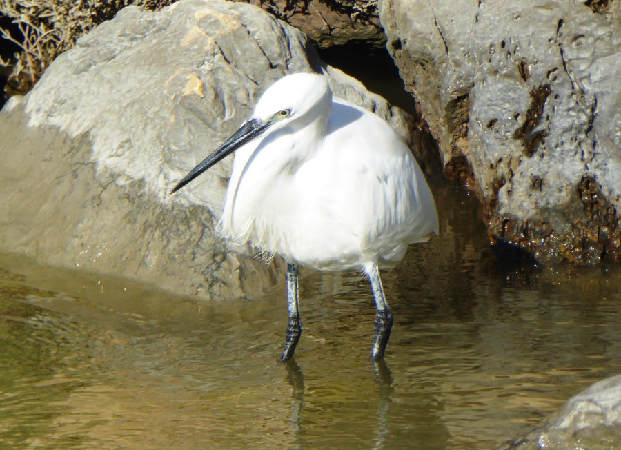 It’s Lady Luck I have to thank for ending up in this surprising scenario. That morning the sun was shining, the winds were fairly calm, and no pluie threatened the horizon. In short, it was the perfect recipe for a little beach-birding getaway. So Ralph and I took to the road and within an hour arrived at the capital of the Camargue, Saintes-Maries-de-la-Mer. From the center of town, we headed to the plage est area. Here you can bet pretty Little Egrets will be sunning themselves by the small water treatment plant, their pristine white feathers rippling in the breeze of the gushing waters. This is where we usually park and begin our trek inland to scan the marshy expanses and canals for flamingos and other feathered friends like Kentish and Ringed Plovers.
