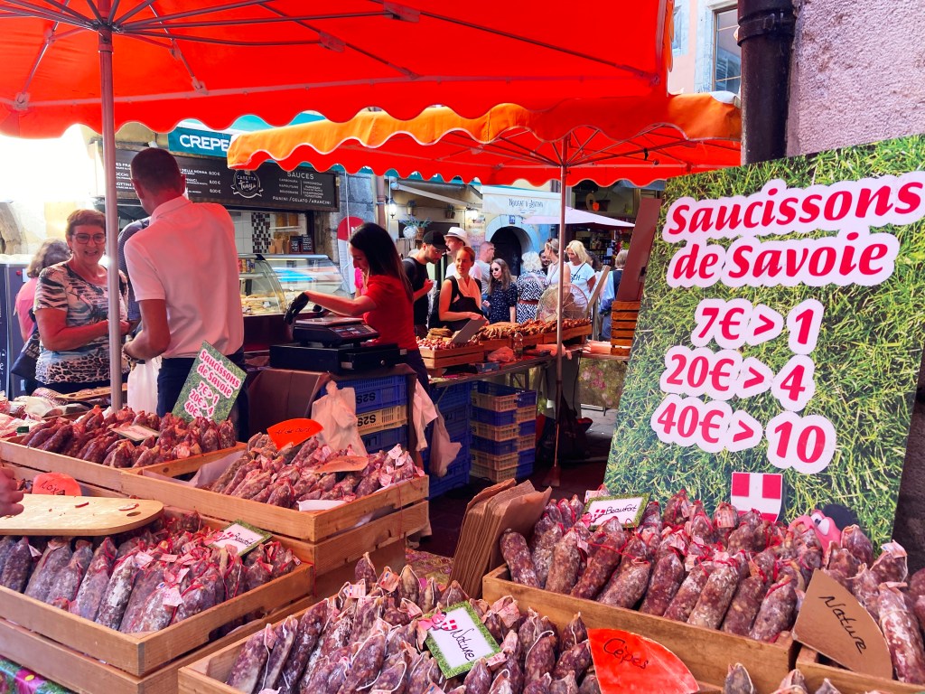This dramatic and dreamy northeast sector of France snuggled into Switzerland is under a four-hour drive from our home in Saint-Rémy. For a week this month, we lived a magical alpine fantasy from a pied-à-terre in the tiny town of Veyrier-du-Lac, waking up to the glorious vision that is Lake Annecy, home to the quaint canal-crossed, cobble-stoned medieval city of Annecy, nicknamed the “Venice of the Alps.”