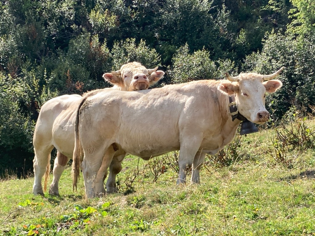 But there was plenty of breathing space an hour’s drive away at Col de la Colombière (1,613 meters), where we’d driven for some hiking and birding in brisker temps. There we ran into a Swiss gentleman manning a spotting scope from a comfy camp chair who was kind enough to show us a notch in the peaks occupied by several ibex (wild goat) with their impressively long, sturdy curved horns. Birds were few but we did spot a dozen Griffon Vultures circling high above.
