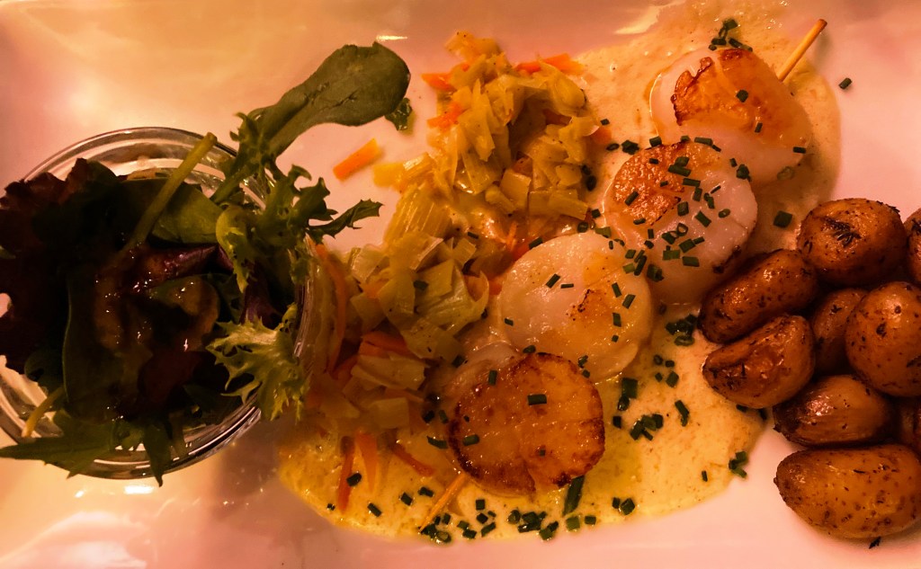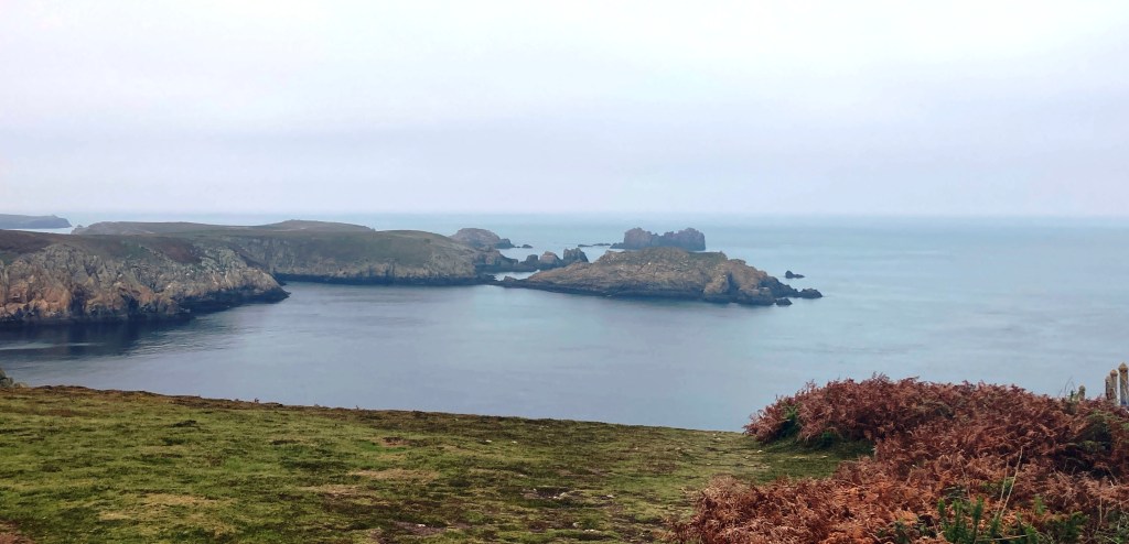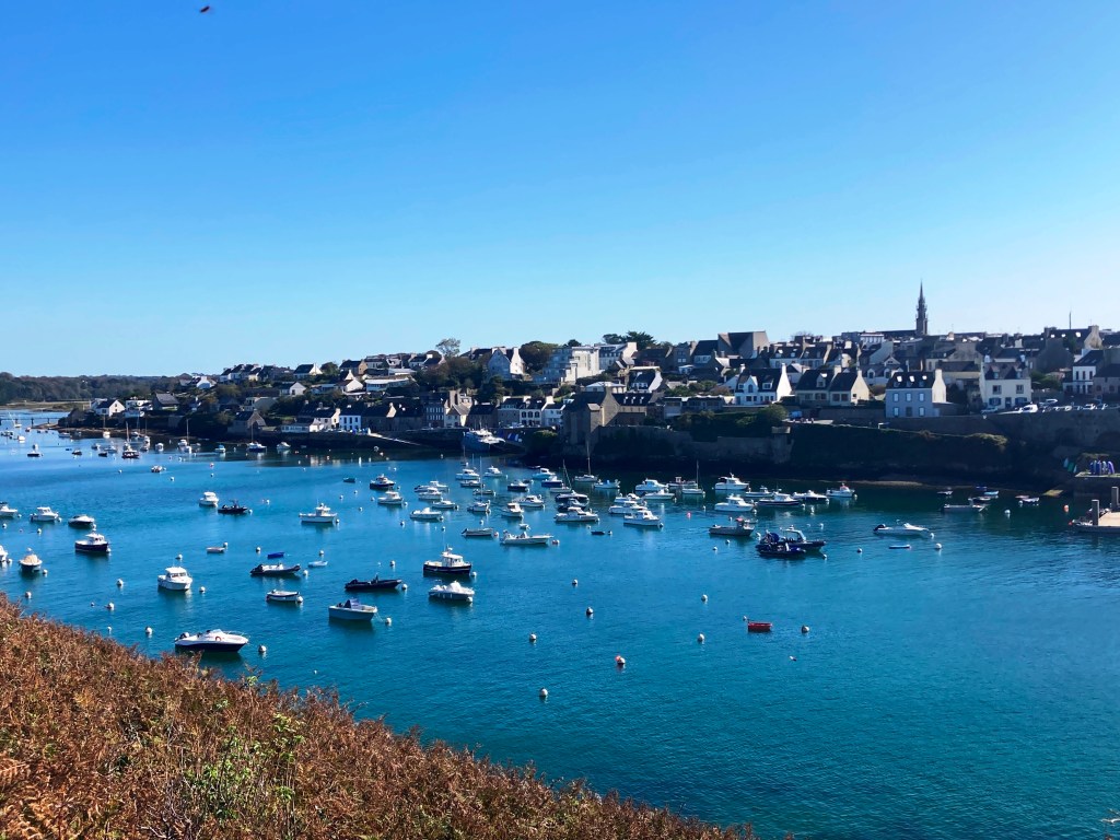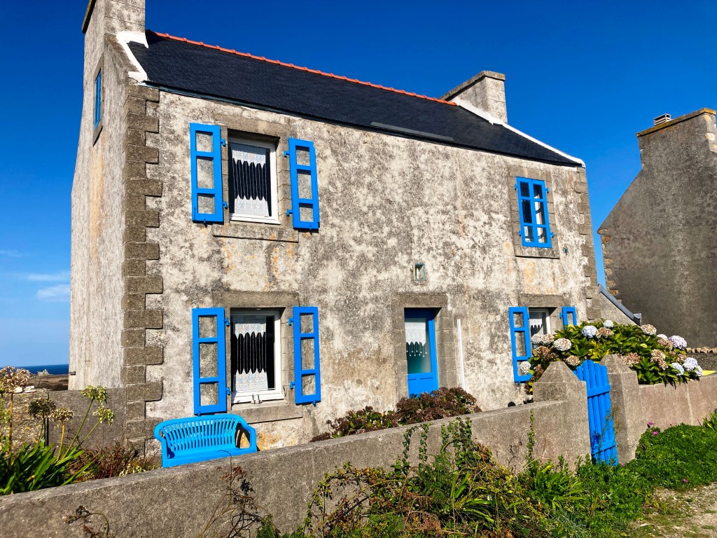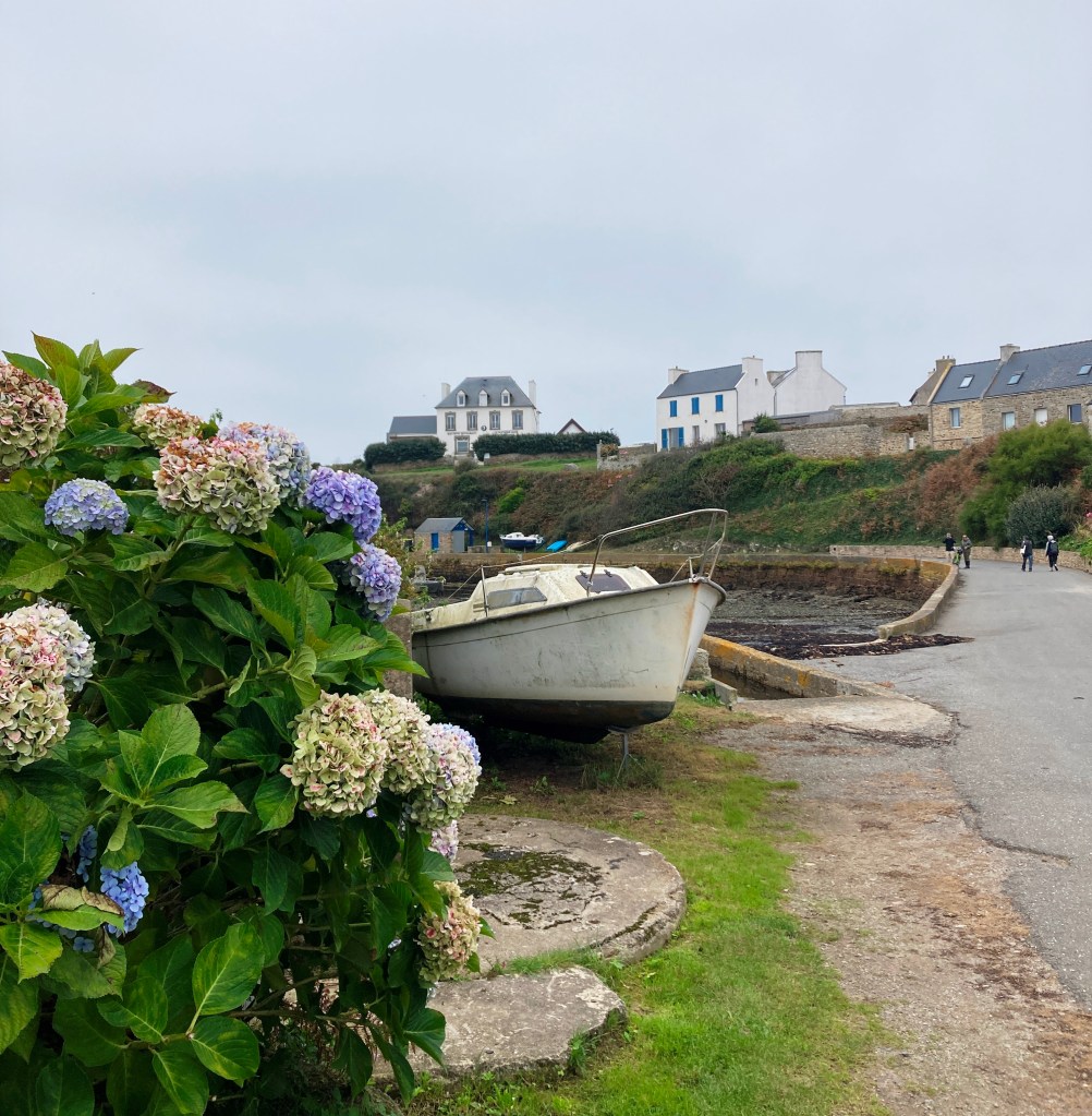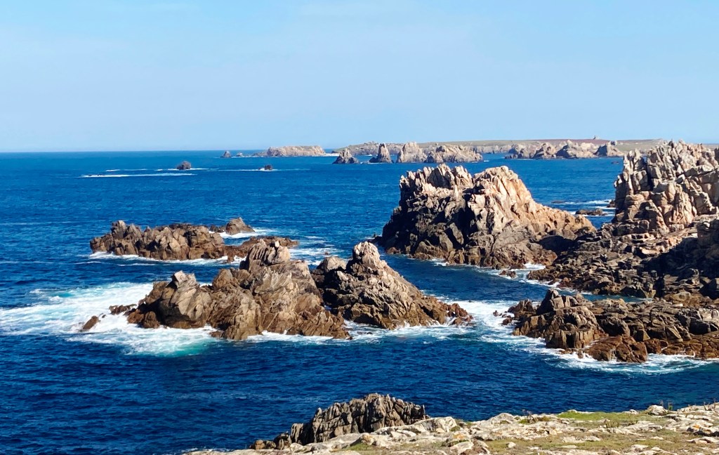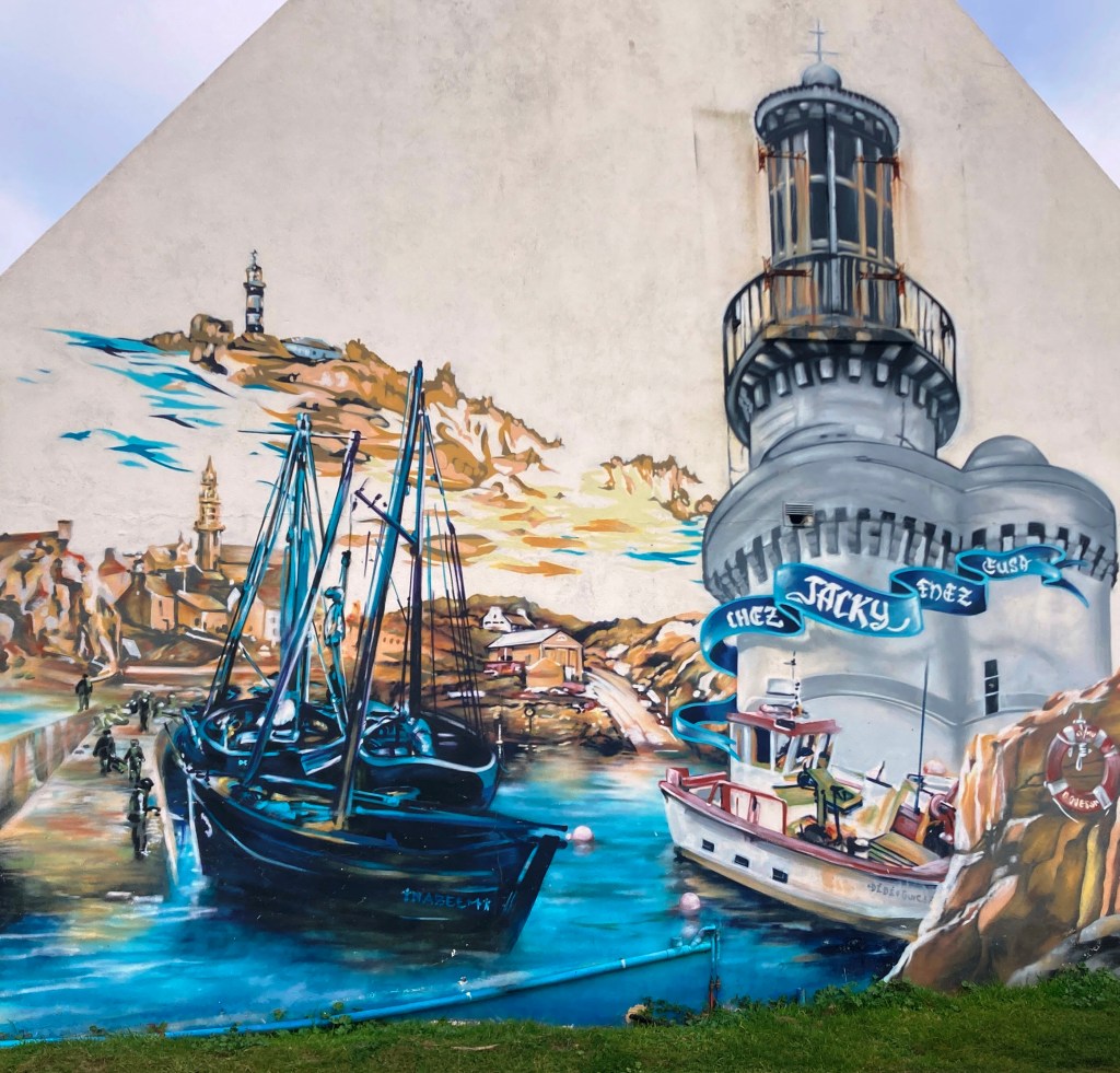 Dusk in PornicElegant Marius offers a casual terrace with lovely port views, as well.Le Conquet, our base for a weekDazzling sunrise, Le ConquetView from acclaimed Bistrot 1954. Chef Nolwenn Corre is one of a few female Michelin-starred chefs in France.Stellar pork medallions at Bistrot 1954, at Pointe Saint-Mathieu, near Le ConquetCrabs for sale at a weekly marketSpunky Sanderlings take flight near Le ConquetYummy appetizer at Le Hanger du Pêcheur A lucky find–Le Hangar du Pêcheur, on the outskirts of Le ConquetThe starkly beautiful island of Ouessant, a 90-minute ferry ride from Le ConquetOuessant shimmers under sunny skiesDramatic rock formations on OuessantOne of many impressive lighthouses, OuessantRed-billed Choughs peck their way through lunch, OuessantSheep roam freely on OuessantAccents in bright bleu enhance this sturdy house, OuessantRed geraniums add a bit of flair to this pretty stone cottage on Ouessant A Lampaul mural captures local life centered on the sea. Fluffy purple hydrangeas contrast with the hard slate roofs in Lampaul.The velo is the way to go on Ouessant, so be prepared to pedal!Delicious lieu jaune (pollack) at La Dutchesse Anne, Lampaul, OuessantOn Ouessant, avid birders pursue their passion during autumn migration, hoping for rarities blown off course.Misty conditions enhance the stark beauty of OuessantOur return overnight stop at the quaint riverside Auberge de la Riviere, in sleepy Velluire, north of Bordeaux.Superb lotte at the Auberge de la RiviereMagical vista from La Pointe de Saint-Michieu, Plougonvelin, by Le Conquet