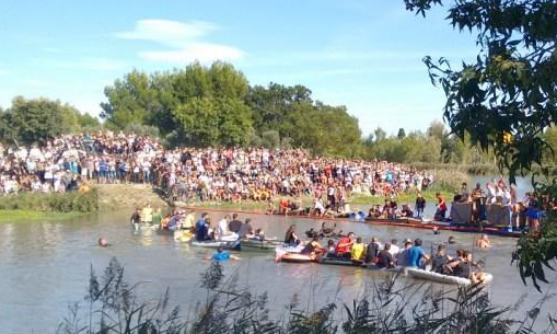 While most of les taureaux are relaxing after an active summer, many are still stomping and charging–and swimming–during the Fête Votive. The bulls trot along a highway from St. Rémy to a nearby lake where they swim across an inlet, hemmed in by colorful rubber rafts and pint-sized boats, to the cheers of hundreds of exuberant onlookers.
