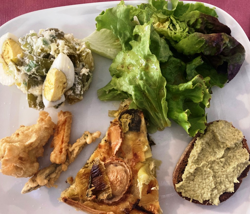 Fabulous tuna amuse bouche, Antoine L’OmnivoreRadishes galore, Saturday market Oh so yummy seafood starter, AntoineScrumptious asparagus starter at Antoine L’Omnivore, MontaubanSuperb lieu noir with moules and fresh veggies at welcoming 5 BouchonsA fave olive oil producer–Castelas–from Provence!Can’t get fresher than this–at the Saturday marketDelectable goodies at Mauranes, est. 1965