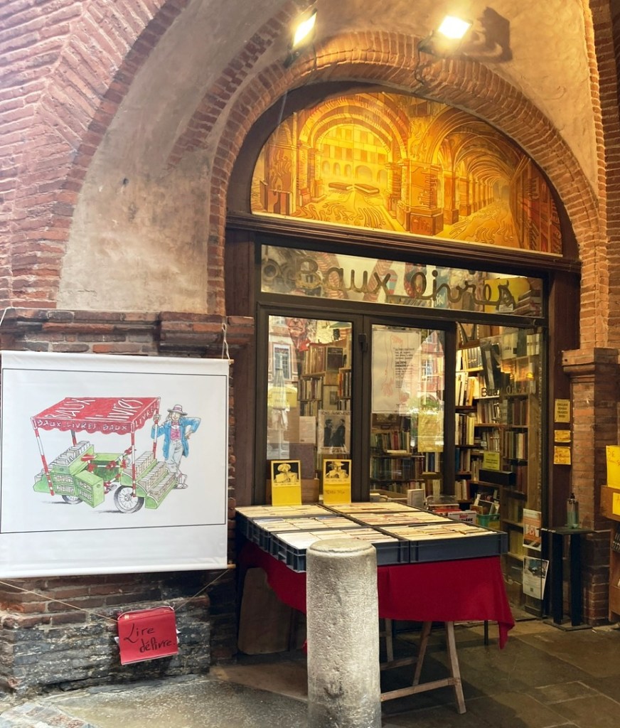 Shimmering Place Nationale, Montauban Sunny Place NationaleQuaint used book storeDouble-arched arcades