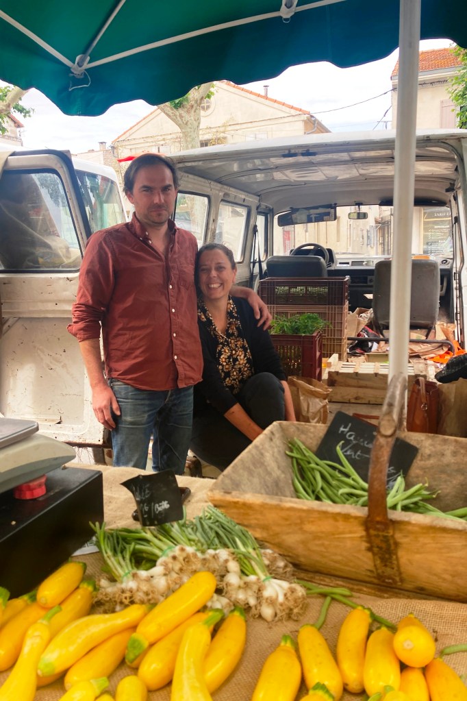 Monique probably stocks the cheese you need.Fabien and his wife Lauren at the St. Rémy marketDomaine Castelas’ basil and mint-infused olive oil is divine.