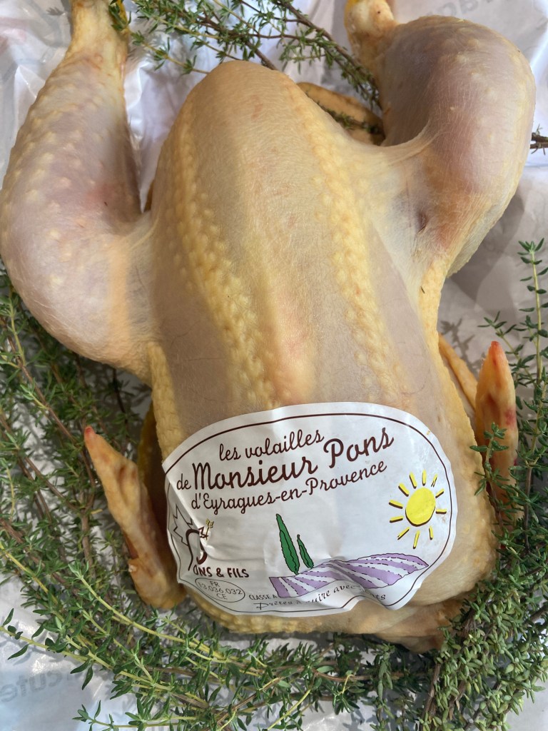 The restaurant Bar Tabac Les Alpilles, known for its lamb, is run by the perennially upbeat Patrick. Even if lamb is not your thing, the authentic brasserie is a nice spot to relax with a coffee or verre de vin. And for bread, Wareing goes to the Terre et Blé bakery (in the industrial zone) for its stellar loaves made from specially grown wheat. I rarely went there as it’s a bit off the beaten track but I’ll happily make the effort now. The thick and chewy wheat loaf I picked up recently was stunning toasted or not. The prize for poulets went to Eric Pons. This young fellow doesn’t have a stand in Saint-Rémy, but I’m hoping this will change. I wasn’t aware of his free-range chicken farm before seeing the show but now I’ve been informed that those “in the know” find them at the Utile grocery store in Eyragues, about 10 minutes from St. Rémy. They’re quite a bit more expensive than regular (less happy?) chickens, but we roasted one this weekend and it was incredibly delicious. (I did have to ask the butcher to remove the neck/head!)