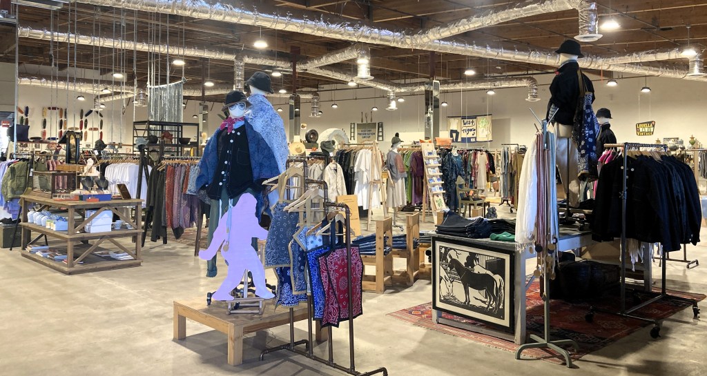 Weekend vintage marketStarbucks by nightThe Thursday Street Fair on Palm Canyon DriveThe Palm Springs Art MuseumDesigned by E. Stewart Williams, the museum conforms to the mountainBuilt Landscape 1, by Australian artist Paul Davies (2015)Jazzy vintage gowns with tiny price tags at Angel View Thrift ShopUpscale vintage wares at Market MarketForever Marilyn is a tourist hit–she stands tall near the museum.