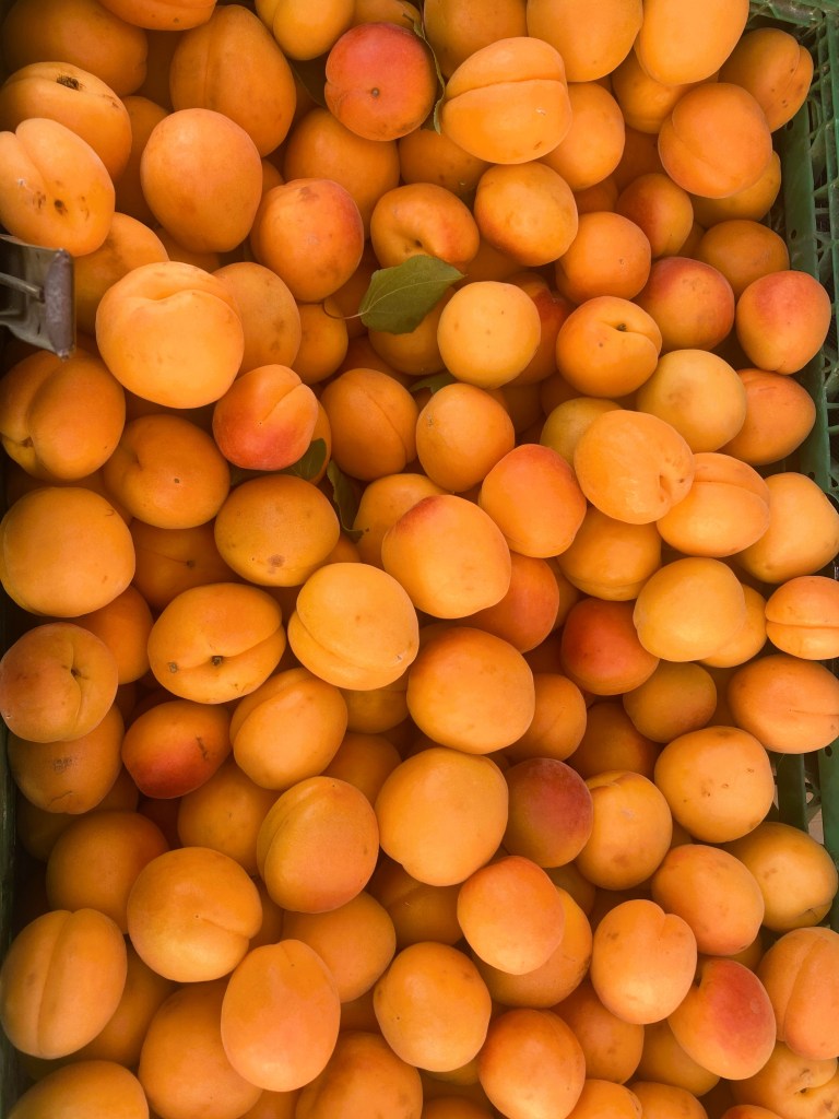 What’s the magic formula for a happy summer in Provence? Keeping cool ranks as the top factor, without a doubt. Mais oui, it’s been toasty here, folks. Morning walks in the Alpilles must begin earlier, and so, too, strolls through the terrific Wednesday market. The come-rain-or-shine vendors put up their gargantuan umbrellas, lay out their irresistible wares, and prepare for the rush of summer customers. It’s always such a pleasure to see what’s on offer—there’s something for everyone. Plan to arrive early to discover your treasure.