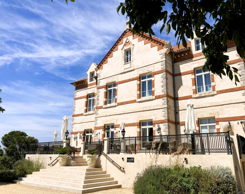Our second culinary adventure occurred due to a newspaper article and a closure. We were headed to the wine cooperative, Les Vignerons d’Estézargues, to pick up some vin rouge called Carambouille (2023) that we’d read about in The New York Times. Since we’d arrive in the area around lunchtime, when the coop was closed, we were planning on a bite in a nearby wine village. Our sights were set on a small restaurant belonging to the Bistrot de Pays group, meaning a countryside establishment offering local, fresh, homemade fare. Located in Domazan, the Bistrot de l’Hoste looked perfect from the outside—but that was all we’d see, as the owners were en vacances for the week. Switching gears, we followed an Instagram tip from food critic Alex Lobrano and headed to Saint-Hilaire d’Ozilhan (near the Pont du Gard), home to the Hôtel La Belle Vie.