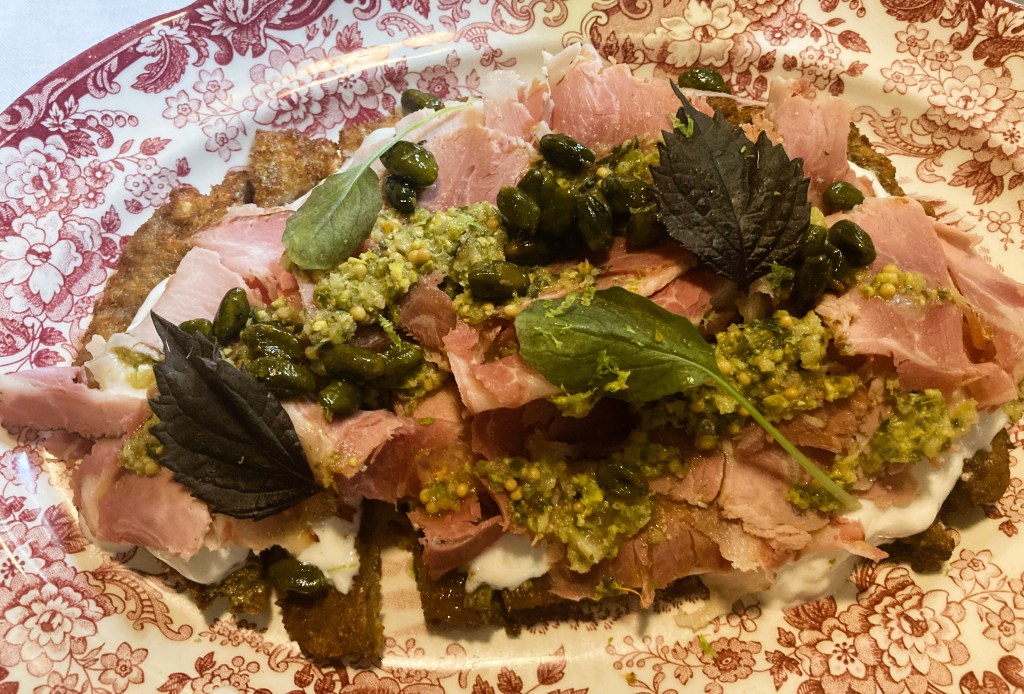 Grilled eggplant and keffir lime sour cream was a stellar starter at Restaurant Normal in Girona. A standout main at Restaurant Normal: Angus beef Milanesa with pistachios.