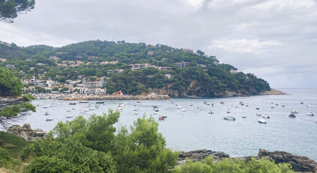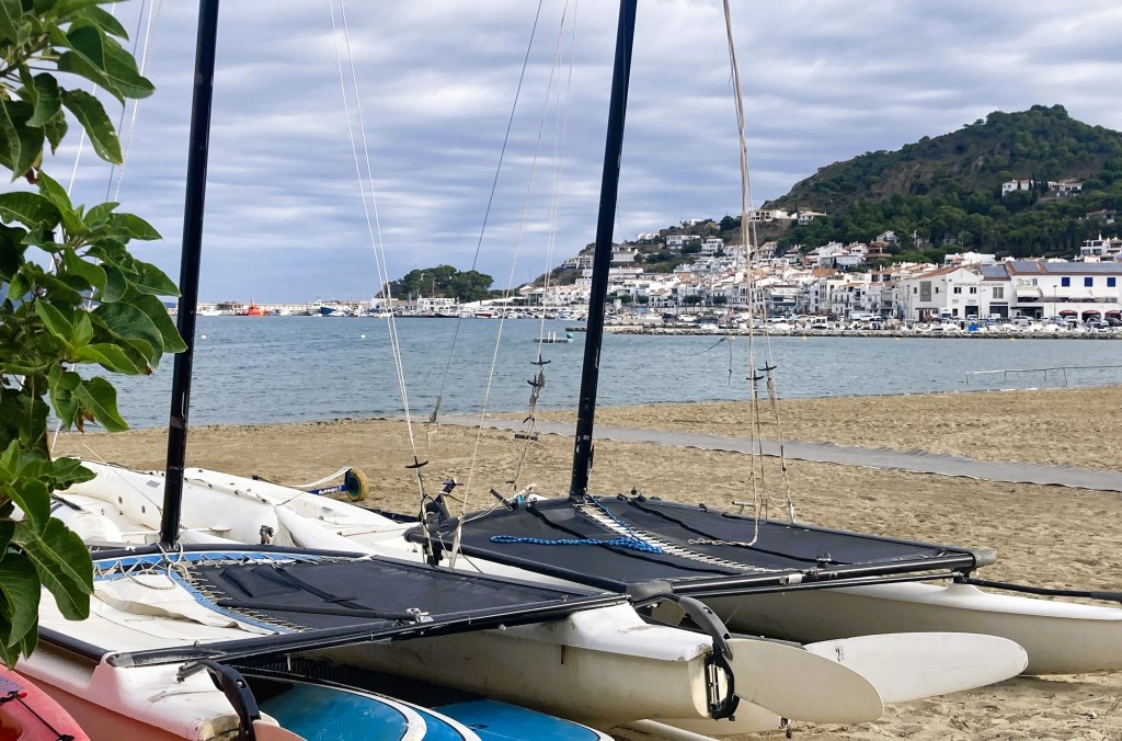 Catamarans await customers.Cyclists are ubiquitous in this area.A lone paddle boarder heads to shore.Beautiful BegurJust after a rain shower, approaching Llança on the coastal path from Calella Palafrugell