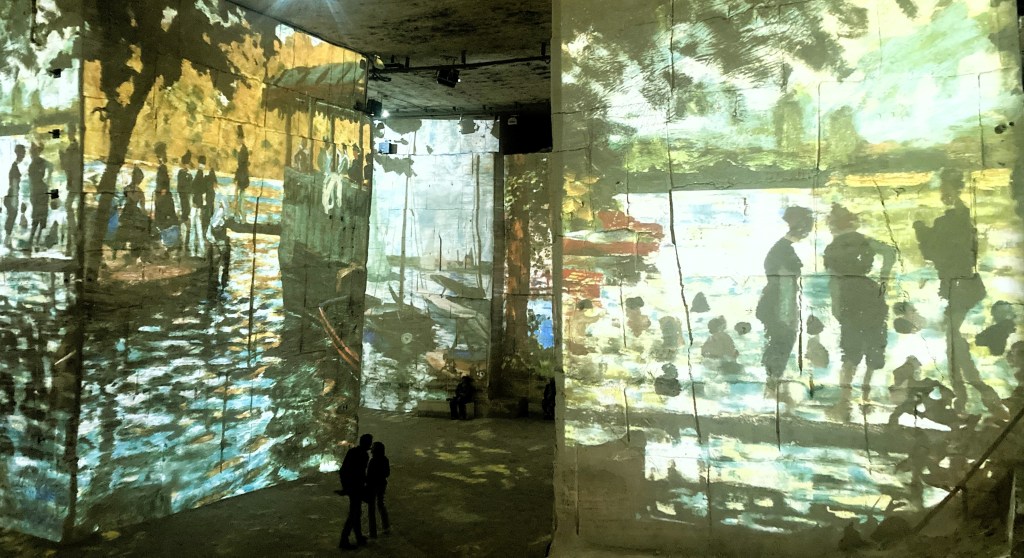 Carrières des Lumières is a former interior quarry, repurposed as a stunning art venue featuring immersive sound and light art-themed spectacles. Each year, the program showcases different artists, but one aspect remains the same—the wow factor, and not just for the stunning visuals but also the dramatic musical accompaniment. I’ve been to nearly every one over the years, and though I’ve loved some more than others—Chagall (2016-17) and Picasso (2018-19) are faves to date—this one starring Claude Monet was impressive. During one segment, for example, you really feel like you’re on a moving train, watching the landscape whiz by.