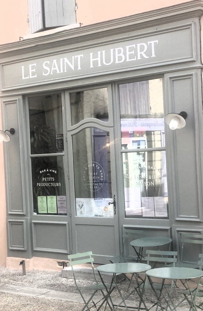 In anticipation of that gourmet event, we have been training our taste buds. Two culinary “workouts” were standouts and, curiously, both happened in a round about way. The main reason we reserved a table at the Le Saint Hubert in Saint-Saturnin-les-Apt was to meet a stranger. The grandson of close friends of close friends in California was doing an internship at the restaurant as a pastry chef. On the heels of finishing a three-year program at the Culinary Institute of America, the twenty-one year old was now completing a three-month stint under the supervision of the chef/owners, American Lise Kvar and her French husband, Eric Monteleon. We would hop over to say hello and sample his “work.”