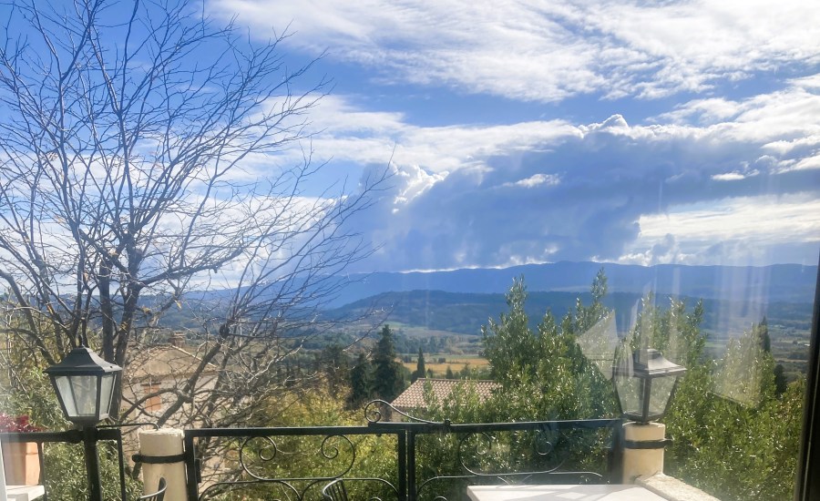Expansive view over the Luberon Valley from the restaurant Le Saint Hubert